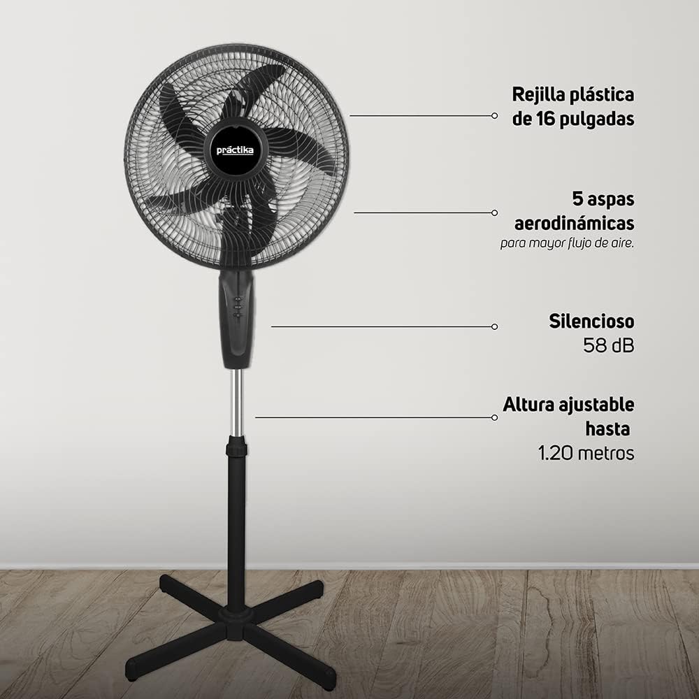 El ventilador de pedestal Practika de Veyco brinda frescura con potencia ajustable. Su diseño moderno y base firme lo convierten en una excelente opción para refrescar espacios en el hogar u oficina.